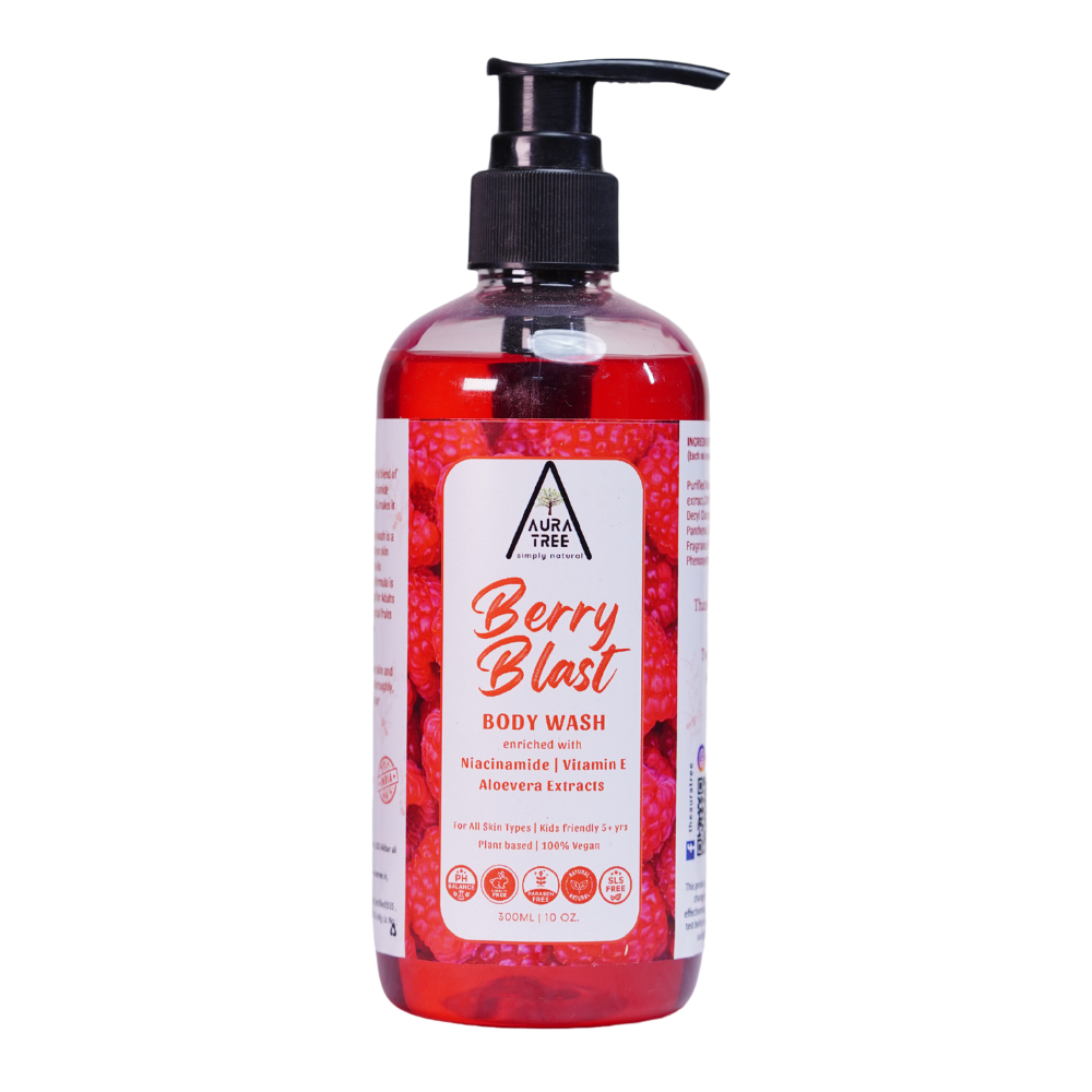 AuraTree Berry Blast body wash is a vibrant and refreshing addition to your daily bathing ritual, infused with the luscious scent of ripe, succulent berries. Crafted to awaken your senses and enliven your spirit, this body wash offers a refreshing burst of fruity fragrance that revitalizes both body and mind.