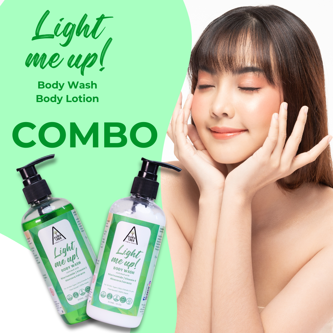 AuraTree Light Me Up Body Wash and Body Lotion work together to cleanse, rejuvenate, and nourish your skin. The body wash refreshes and revitalizes, while the lotion balances moisture levels, leaving your skin soft, supple, and soothed.